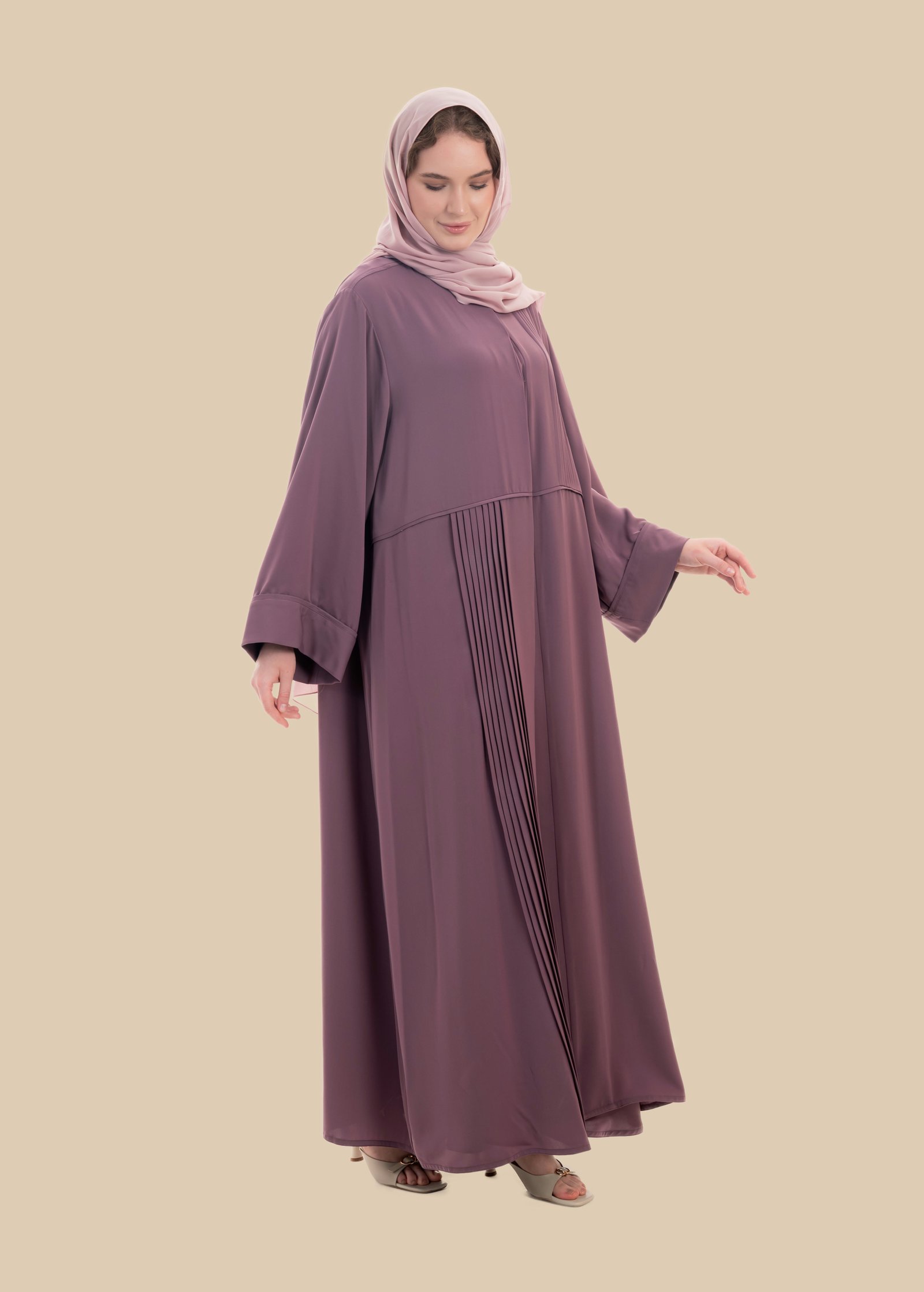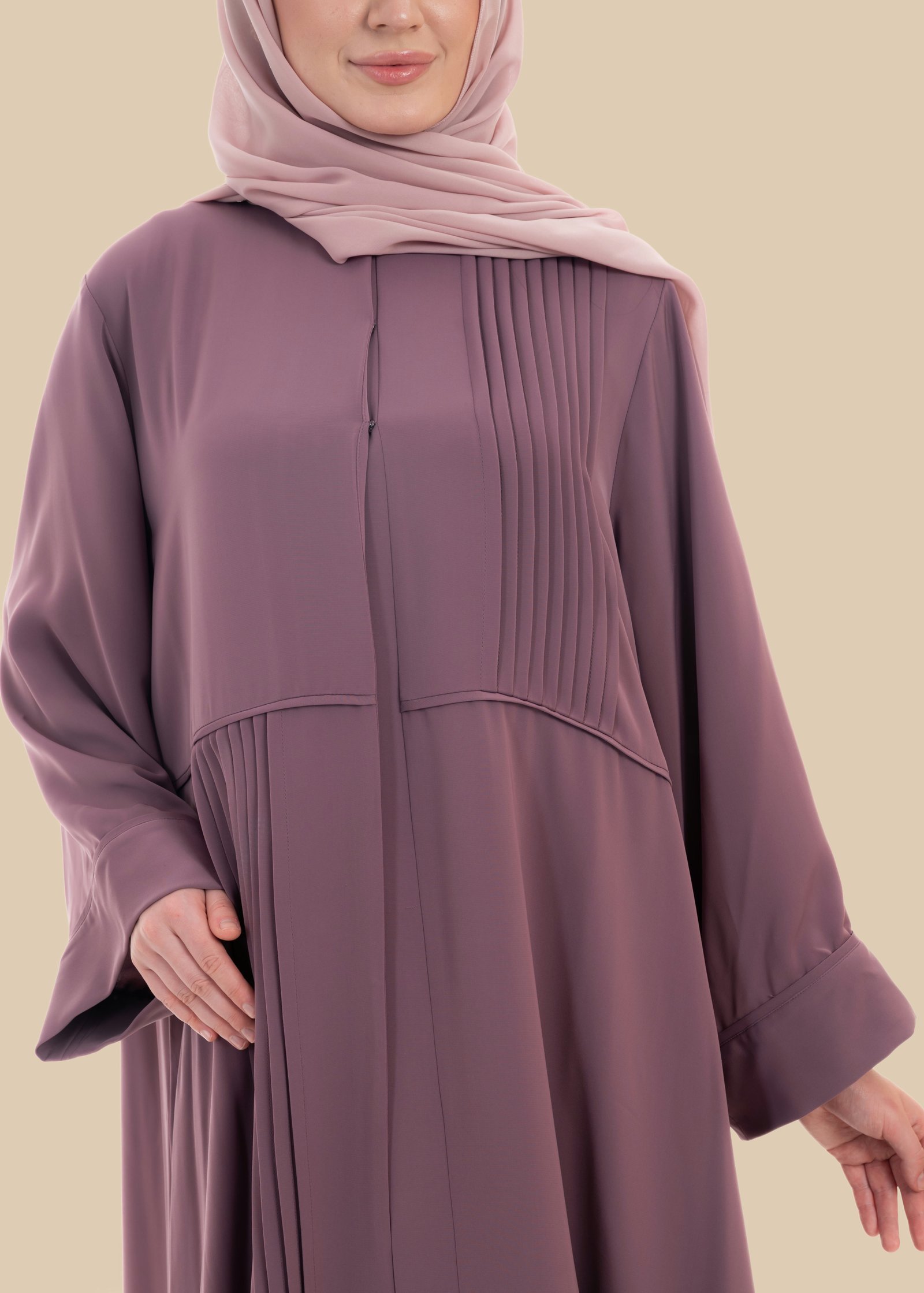 Grace meets structure in our Safaa Abaya, crafted from luxurious Korean Nida fabric with exquisite pintuck detailing. Front-open with elegant buttons, it is stitched with precision for a polished office look and effortless charm on casual market strolls — where modesty and refinement move as one.