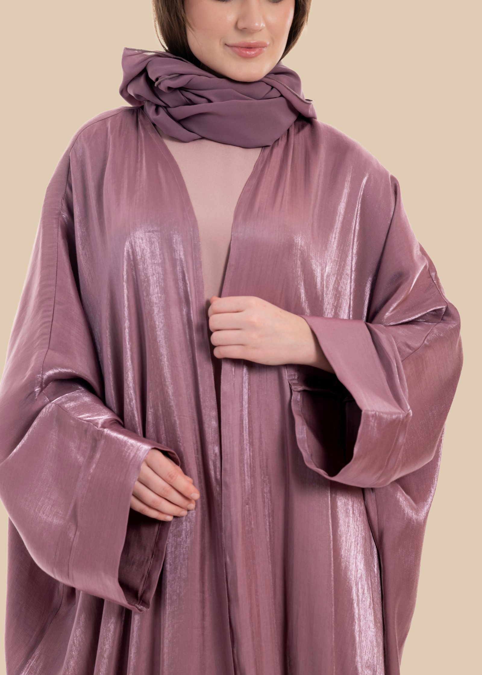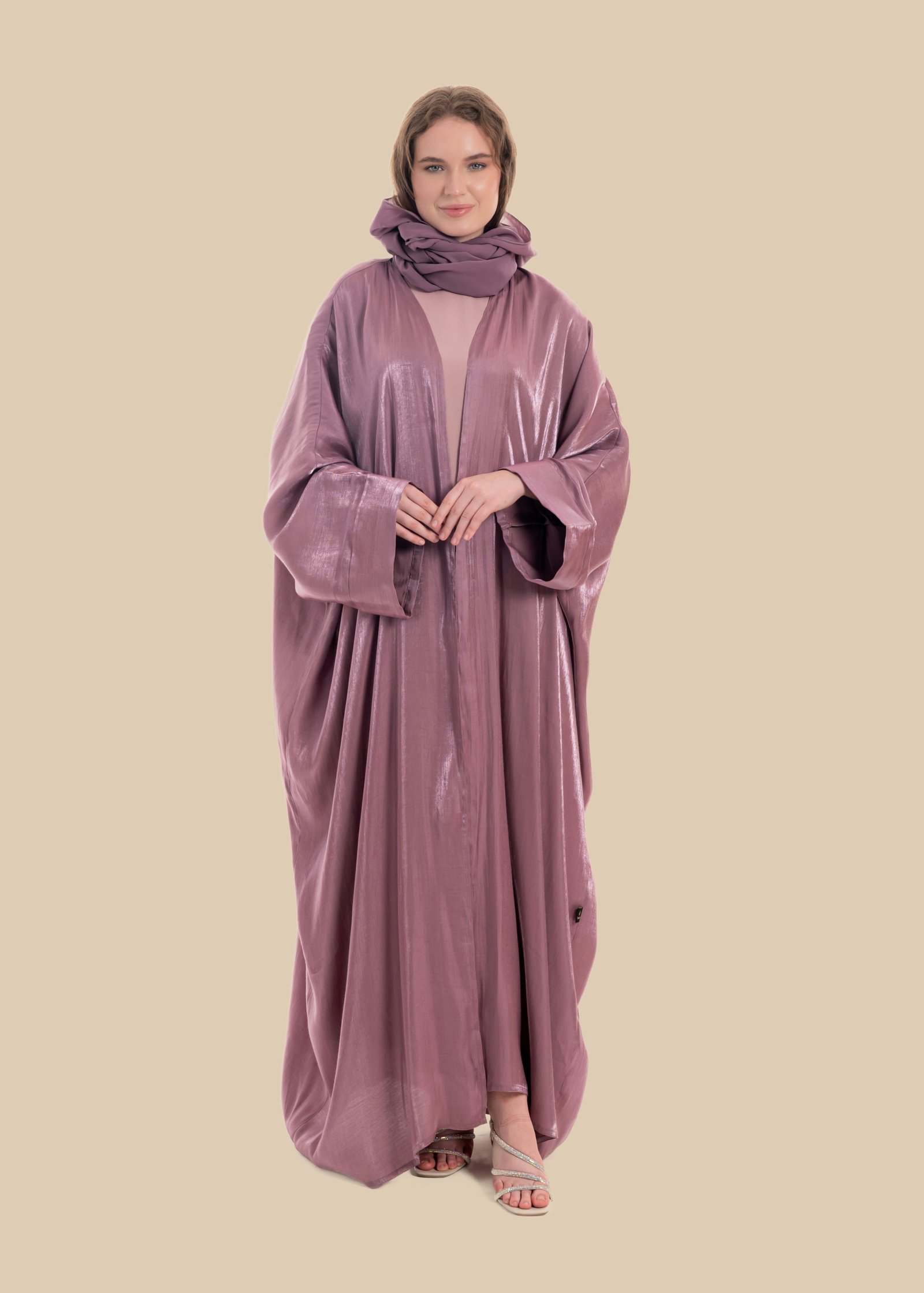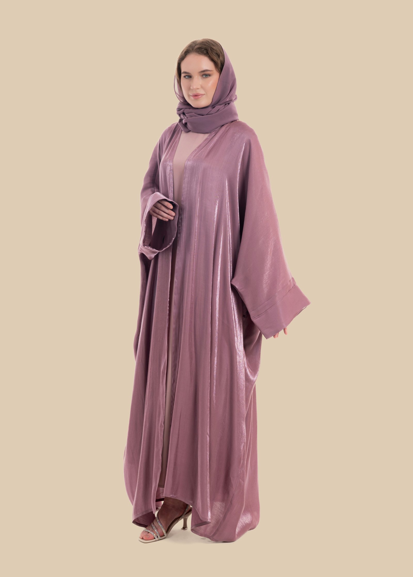 A delicate dream woven in dust rose — the Shireen Abaya flows like a whispered promise, its imported shimmer fabric catching the soft light of evening. Paired with a perfectly matched inner, every fold moves with grace, every stitch a testament to precise craftsmanship. Shireen is not just worn; it is felt — a tender symphony of elegance made for moments that deserve to shine.